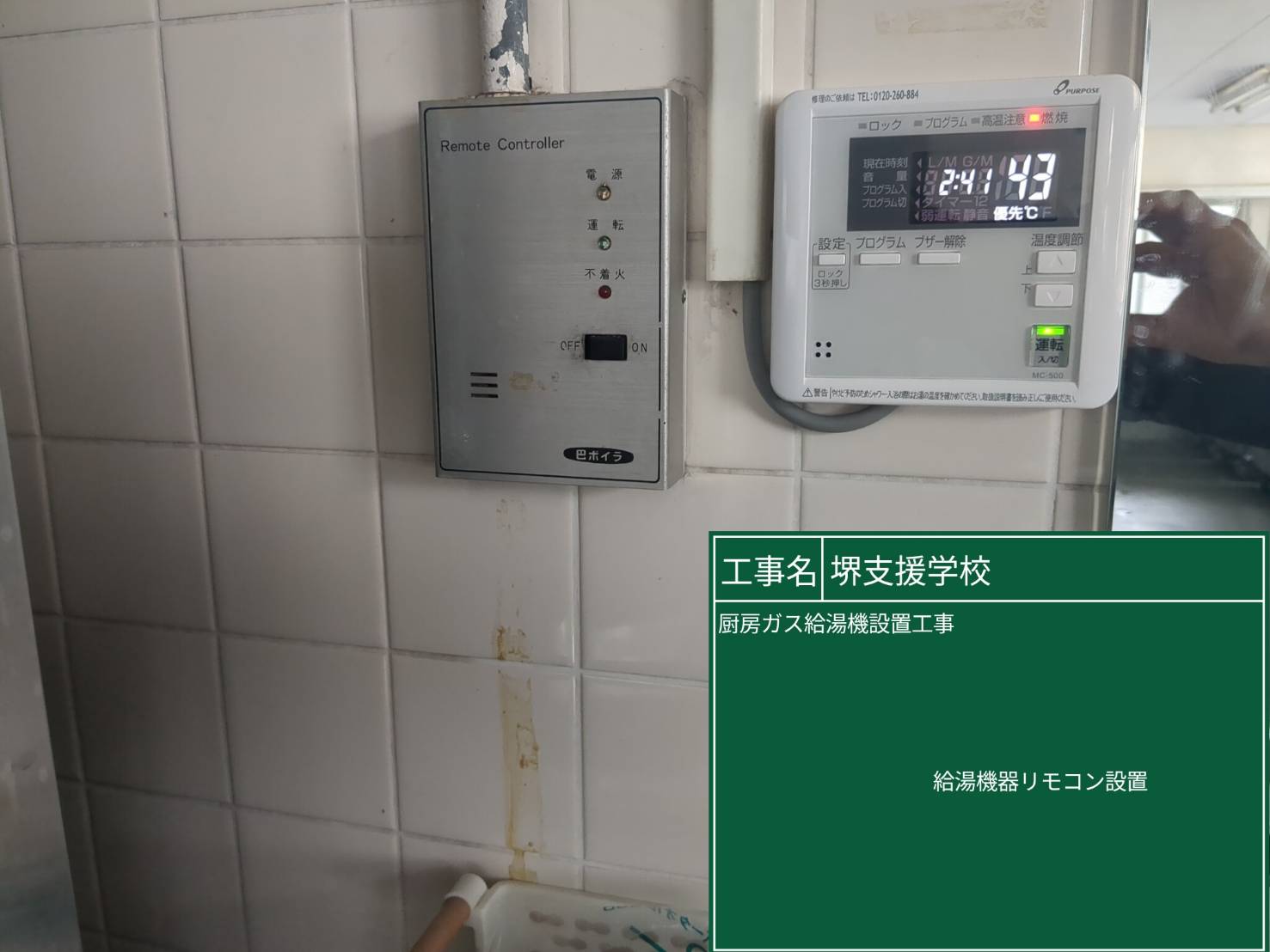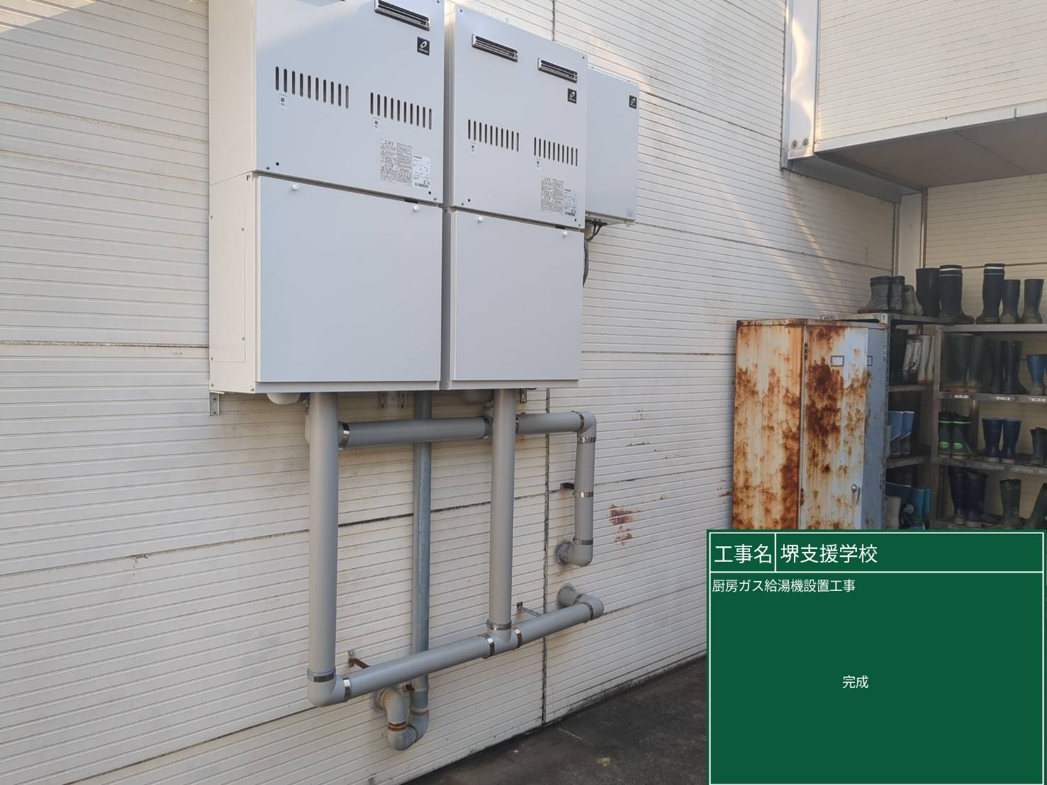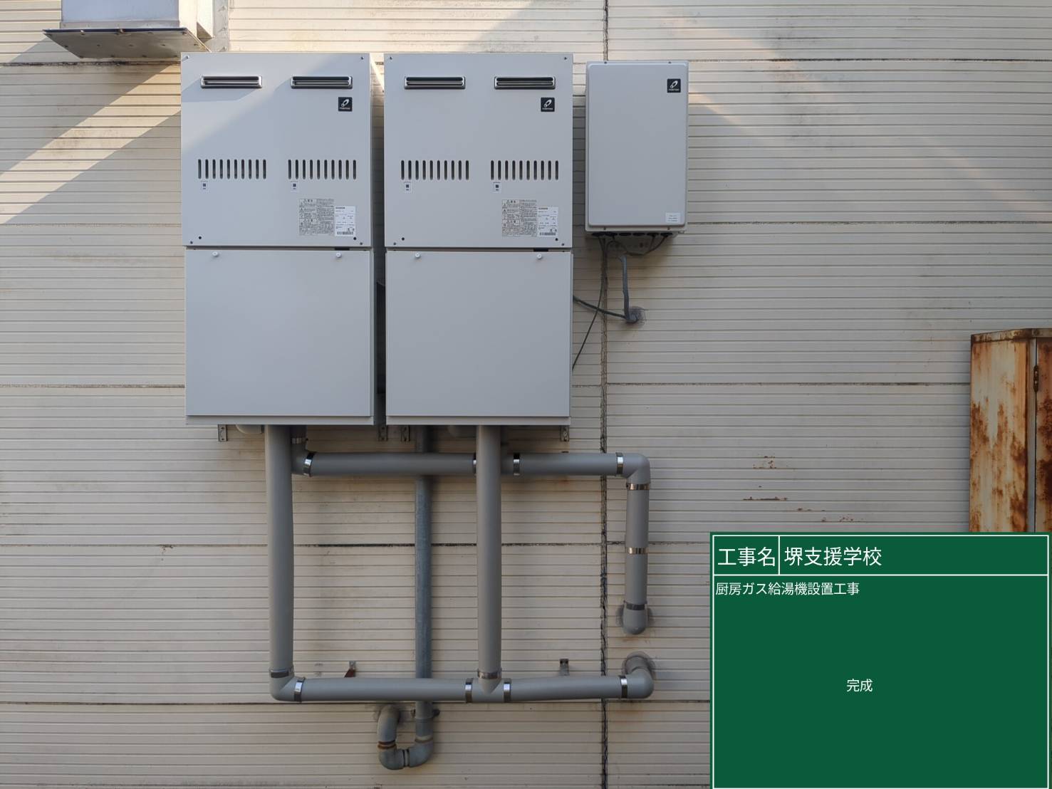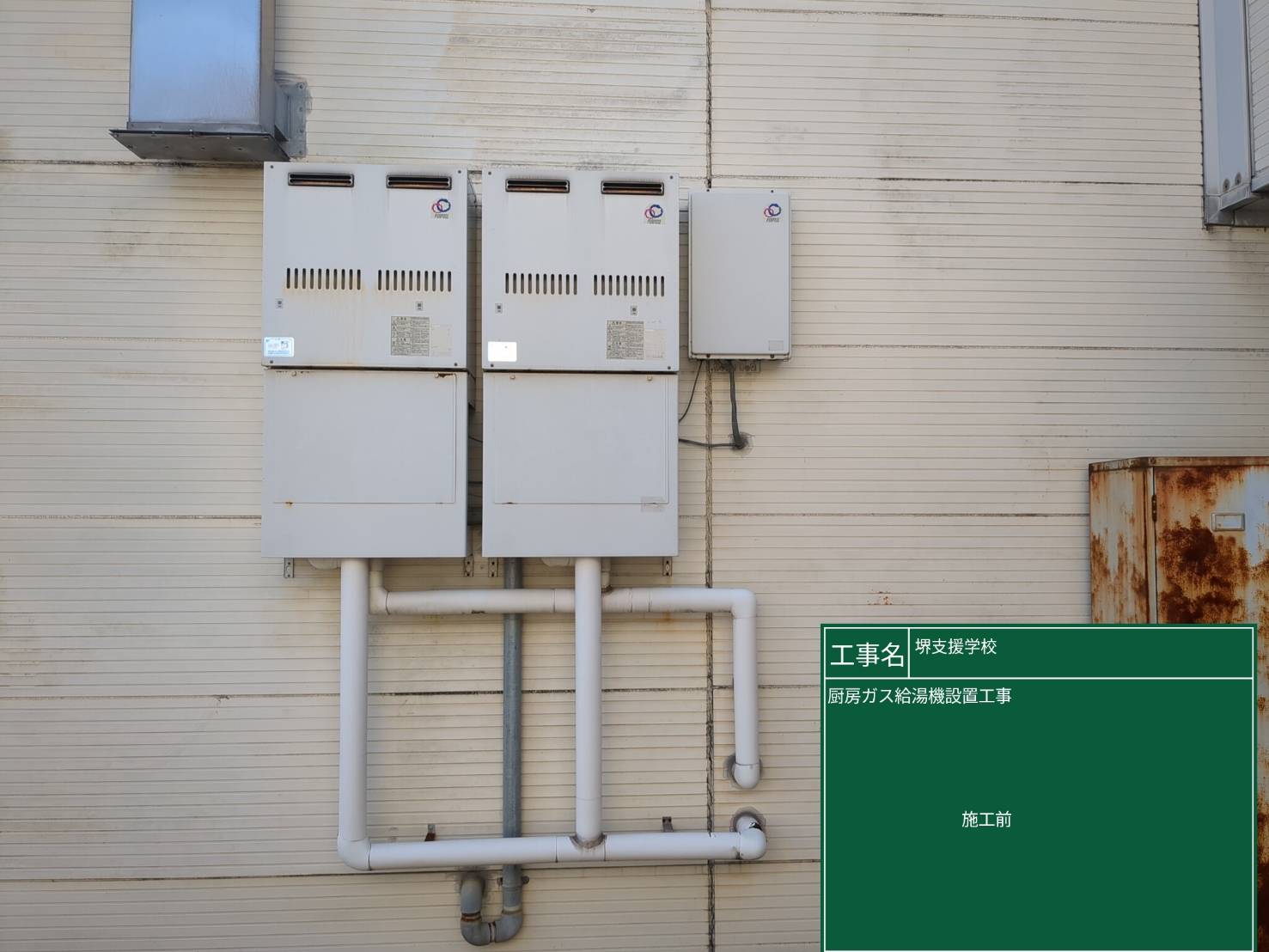【堺市堺区】大阪府立堺支援学校 厨房ガス給湯器設置工事