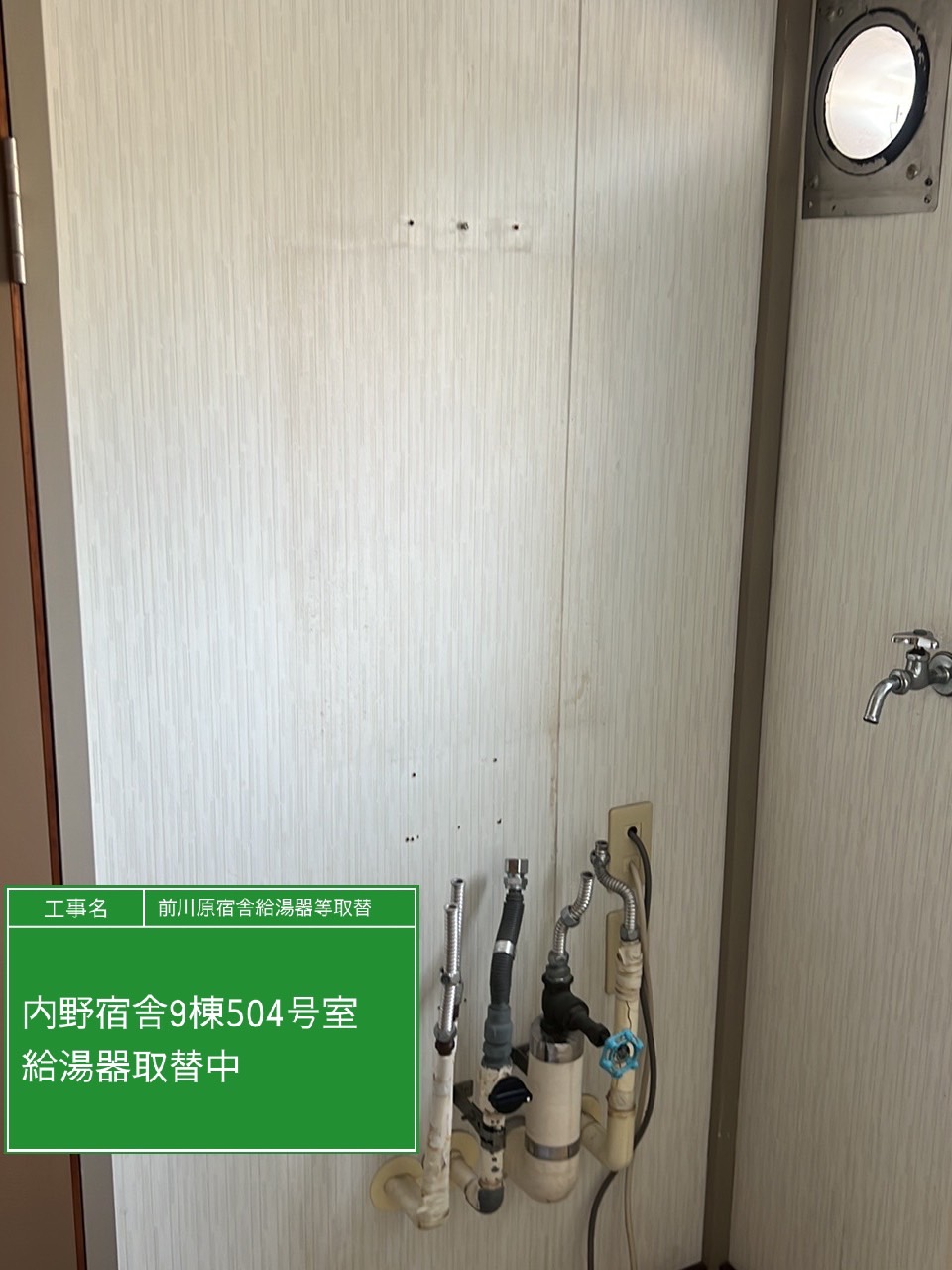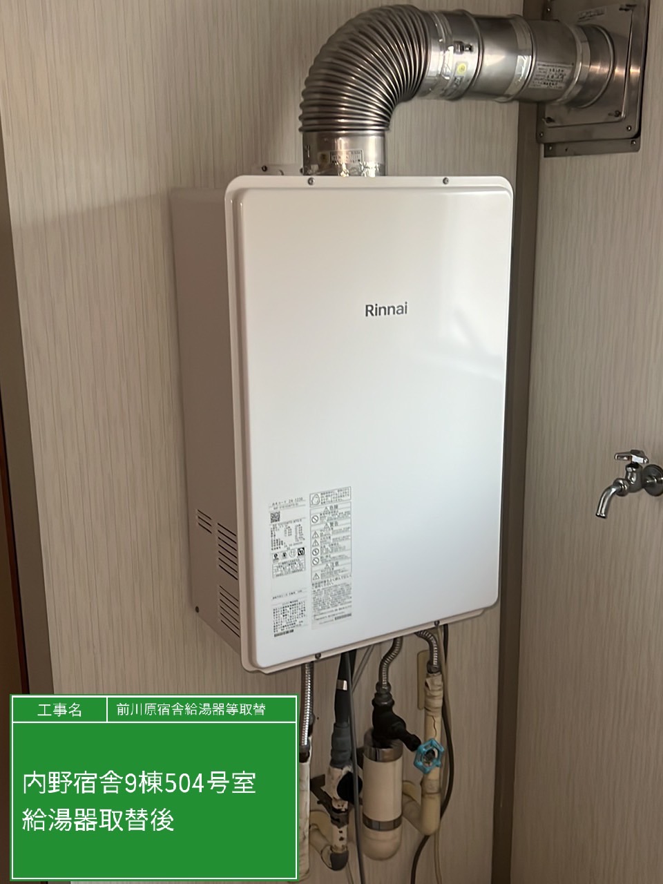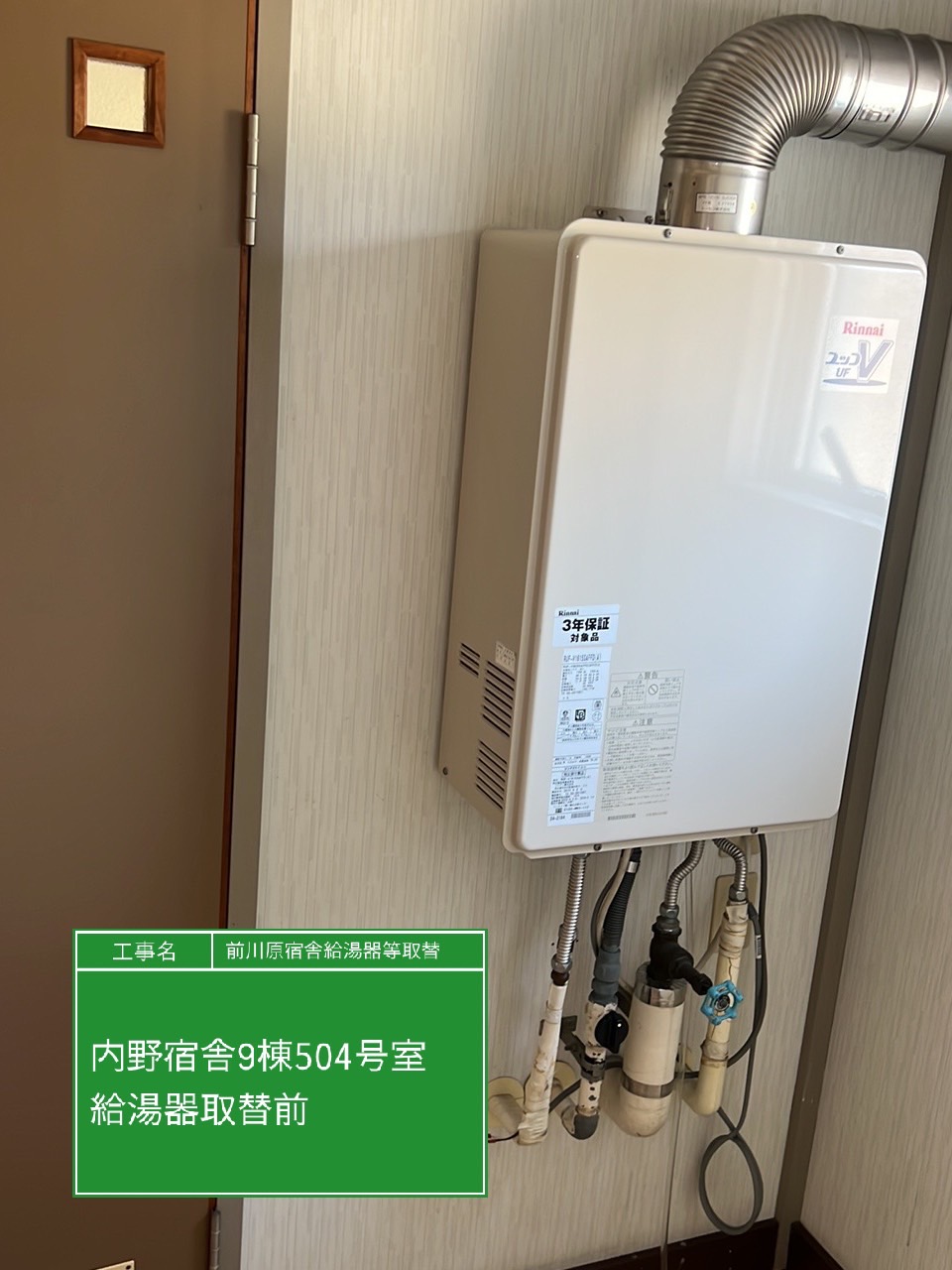 | 工事内容 | 内野宿舎9棟504号室(給湯器) |