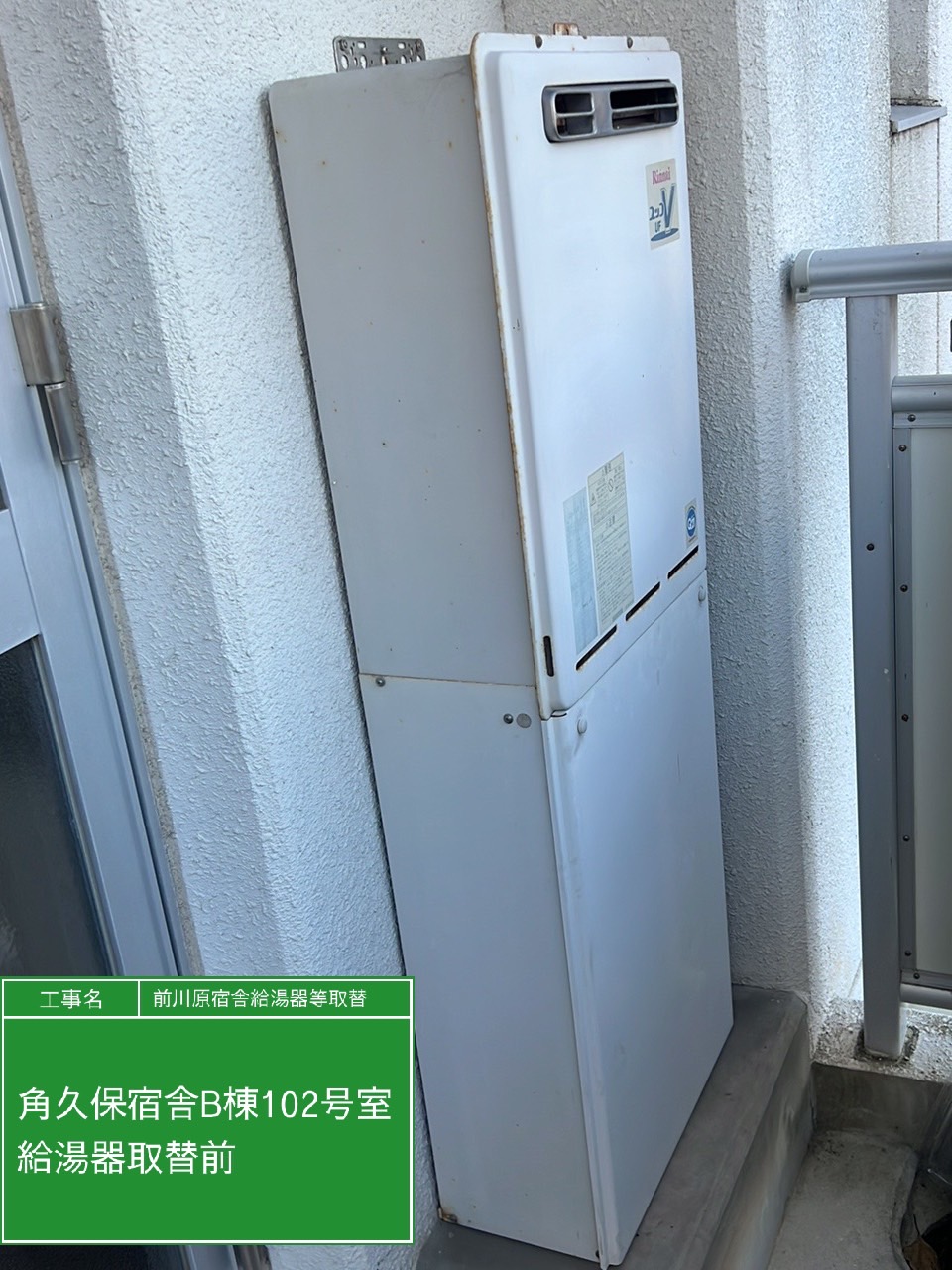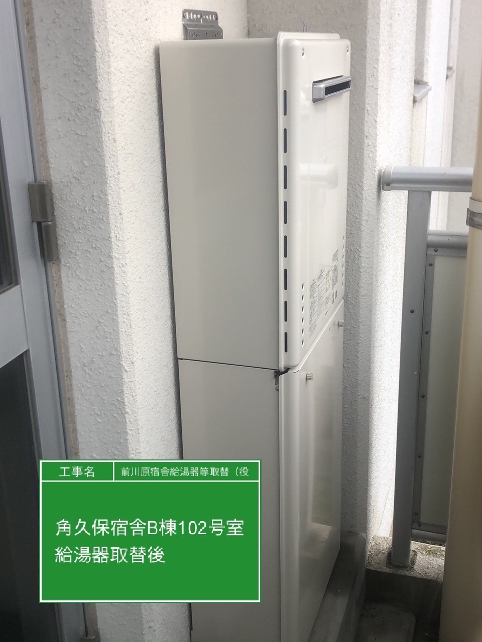 | 工事内容 | 角久保宿舎B棟102号室(給湯器) |
