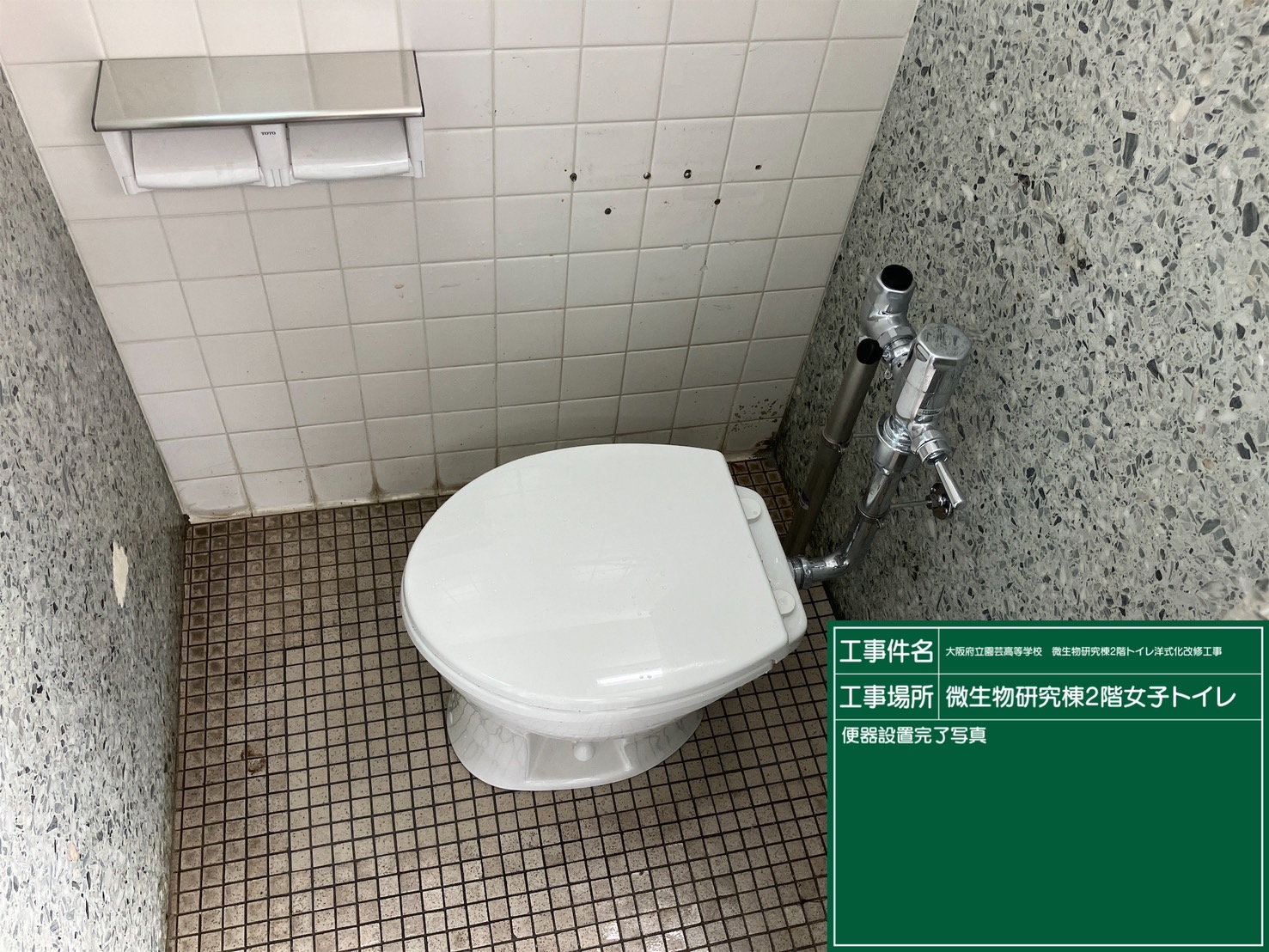 【池田市八王寺】大阪府立園芸高等学校 微生物研究棟2階トイレ洋式化改修工事