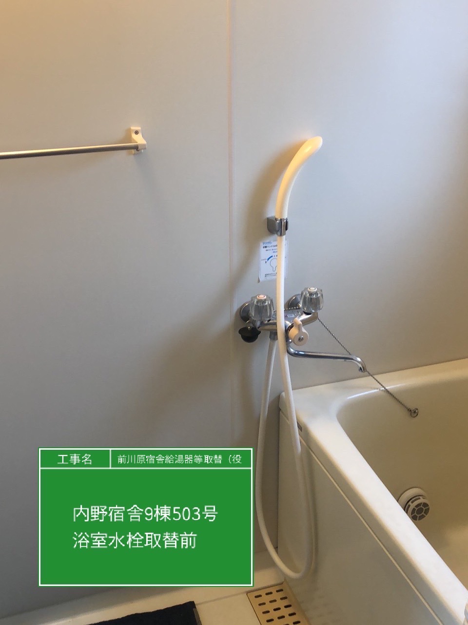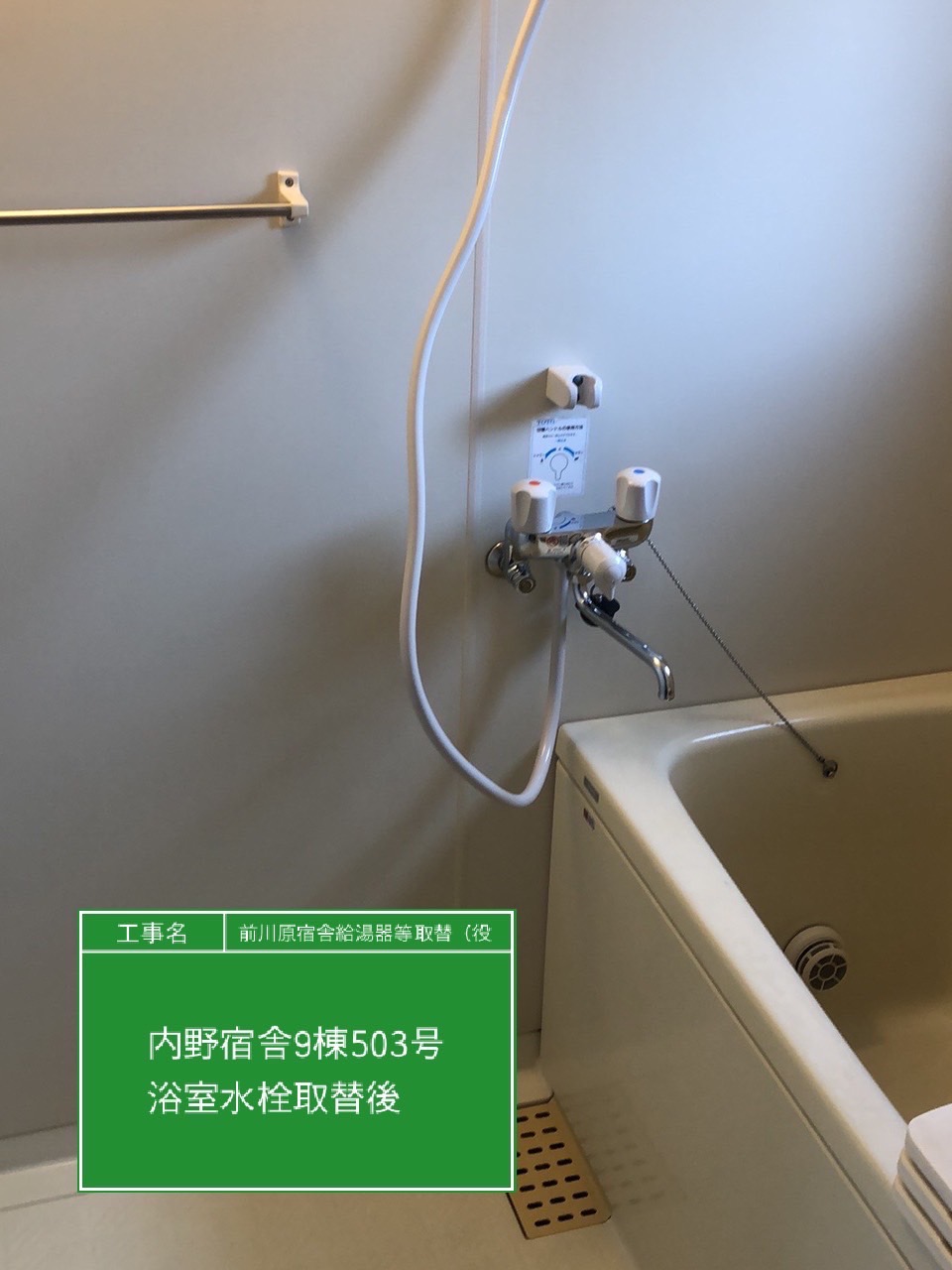 | 工事内容 | 内野宿舎9棟503号室(浴室水栓) |
