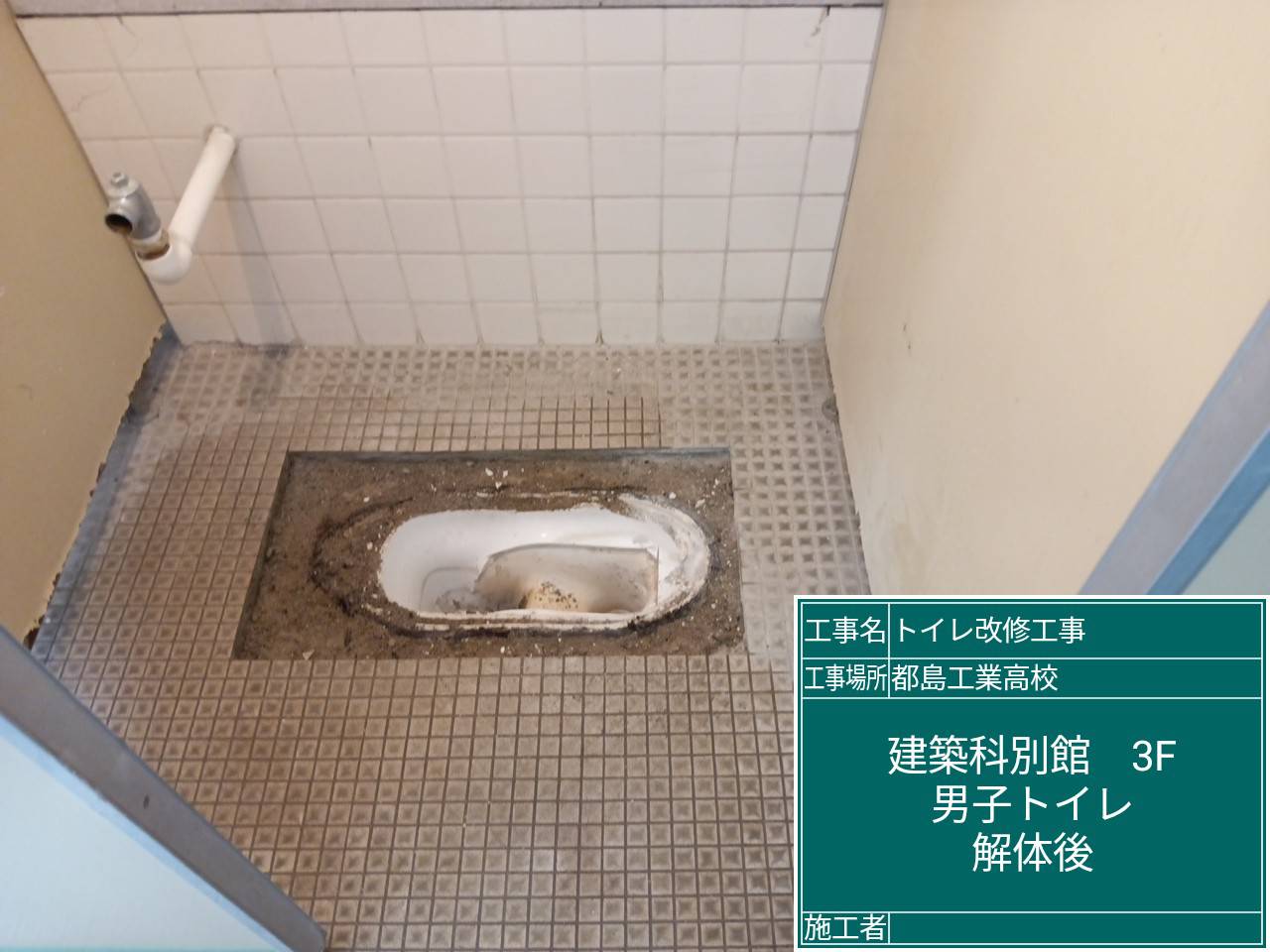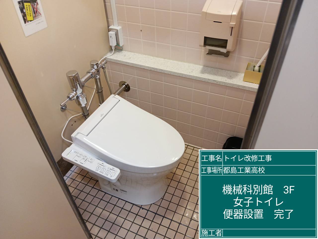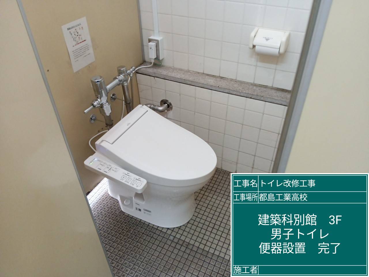 | 工事場所 | 機械科別館3階女子トイレ、建築科別館3階男子トイレ |