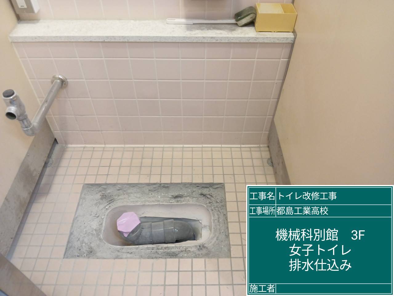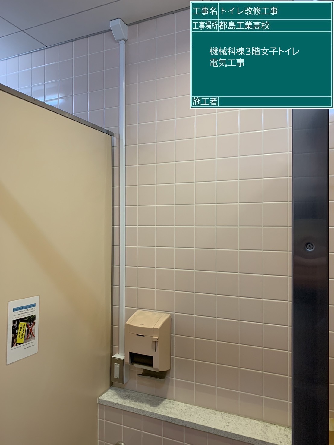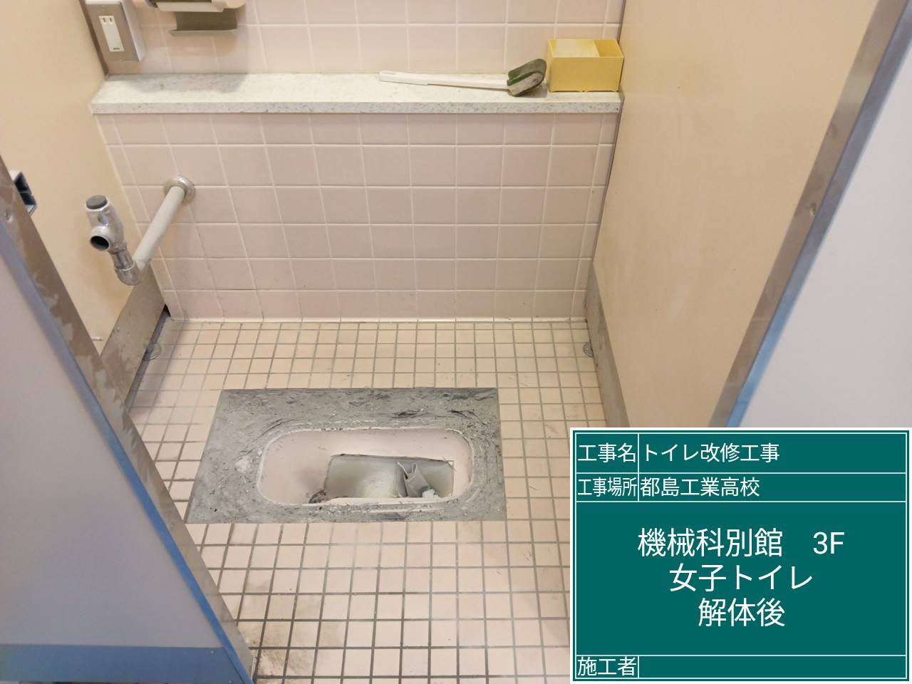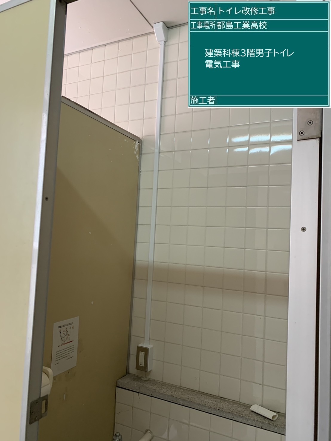 | 工事場所 | 機械科別館3階女子トイレ、建築科別館3階男子トイレ |
