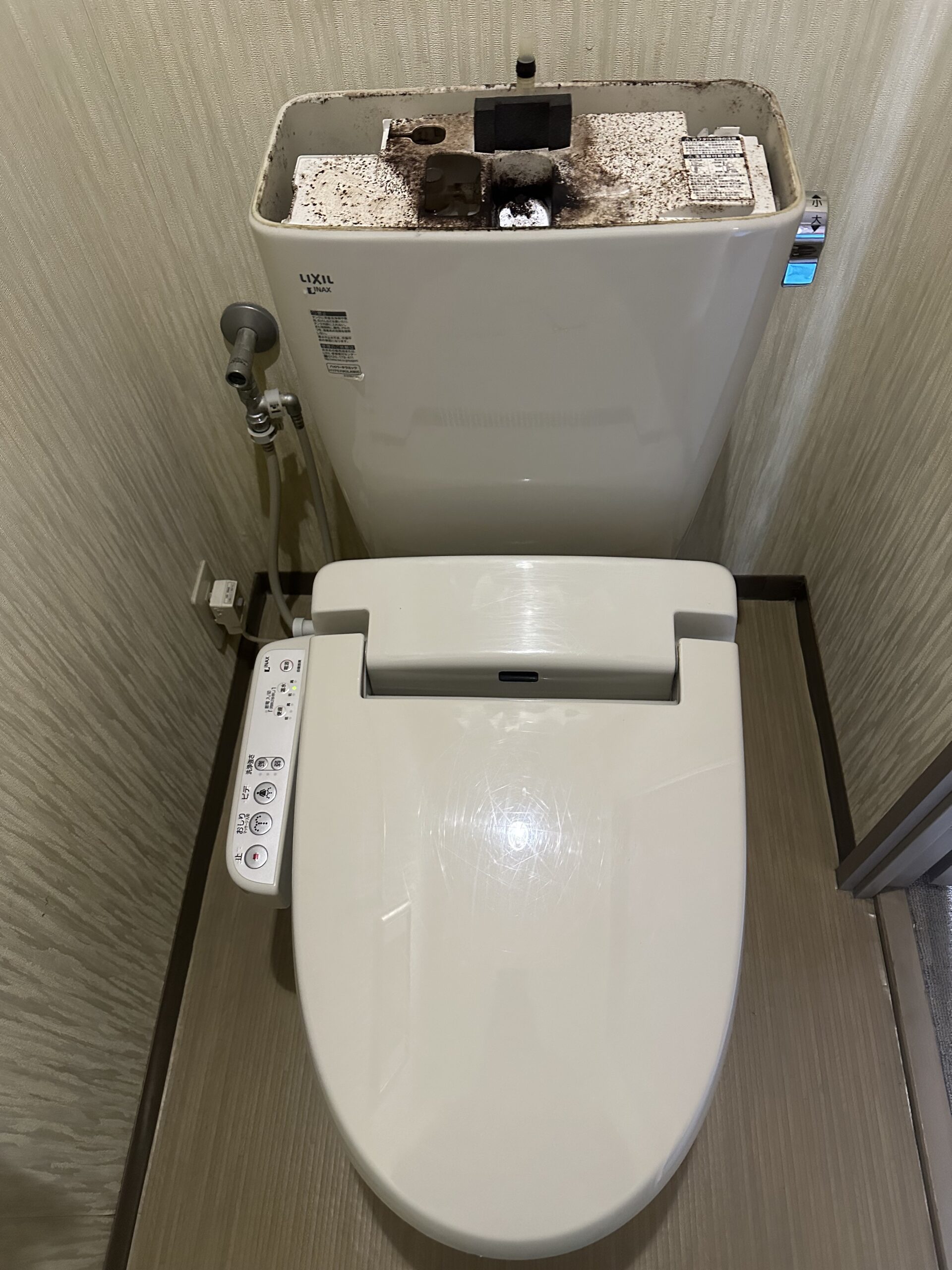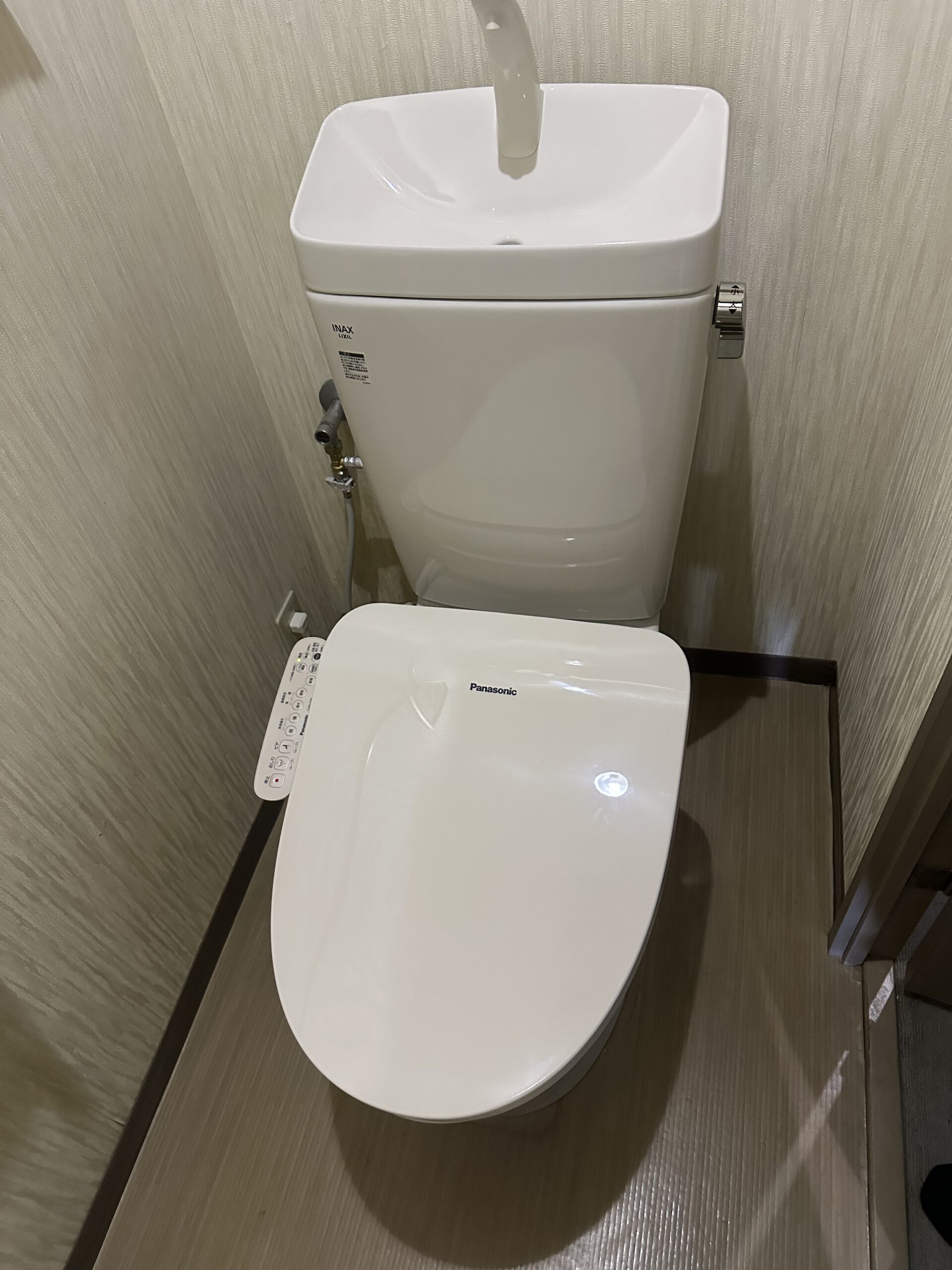 トイレをした後に、上の手洗いできるところとタンクにたまるところの水がしばらく止まらない状態が続きます。