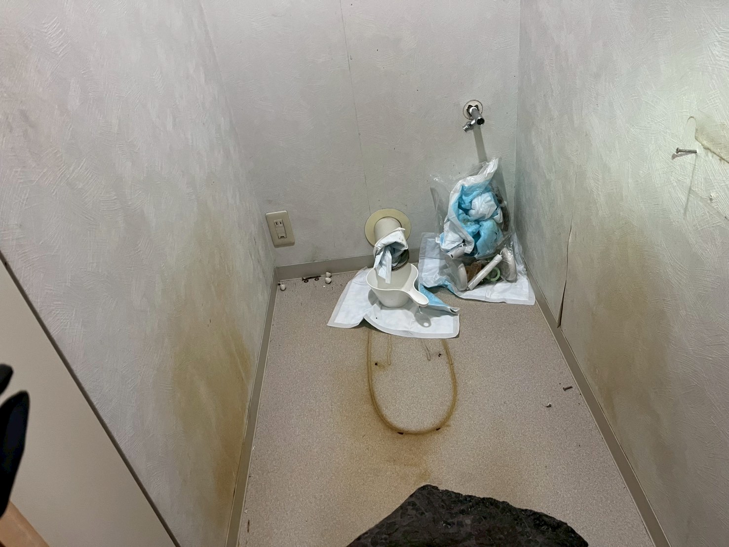 【東京都八王子市城山手】トイレ交換、止水栓移設、クッションフロア張替え